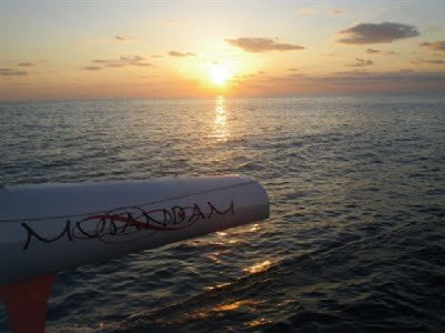 From Charlie onboard toady “It is another glorious Indian ocean sunrise and it’s pretty clear, it’s going to be a hot day again today. We have a few photos of sunrises now, Hooch in particular has taken the lead in sunrise and sunset photography, so when he asks you if you’d like to see a few of his sunset photos – mumble some excuse and head for the door, as you’ll be there a while – (there’s more than one picture per sunrise on this trip that’s for sure). We have a calm sea, and a gentle north east wind so are upwind full main and genoa, sometimes code zero