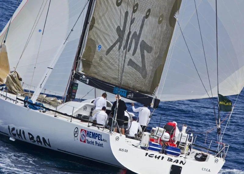 The three leading maxis were achieving extraordinary speeds in only 10-12 knots of breeze and on course for Tasman Island, the last major rounding landmark on the 628nm course.