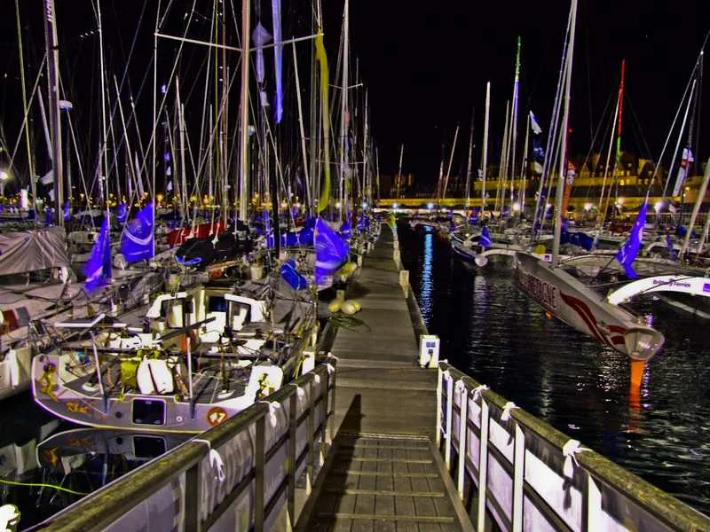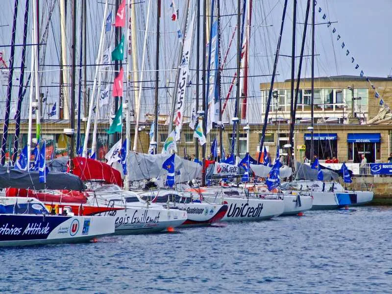 Multi Hulls at dock in St. Malo (Photo by Colin Merry) Between ten and midday this morning it was time for the skippers to meet up and sit down for the first formal briefing of this ninth edition of the Route du Rhum La Banque Postale. Eighty six skippers attended and were addressed by Jean Maurel, the Race Director, Sylvie Viant who is in charge of the race committee, Pierre-Andre Saladay and Didier Querler, who are representatives of the 24F maritime survelliance, the Nantes customs, Stanislas-Xavier Azzis, representative of the 32 F maritime surveillance, Jean-Yves Chauve, doctor of the race, Didier Moreau, representative of the SNSM and mebers of CROSS. The key reminders about safety at sea were presented and points on the race Sailing Instructions were discussed.