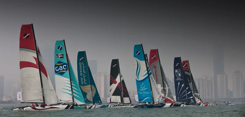 In the words of singer, Paolo Nutini, ‘What a day…!’ Four and a half hours of high-drama on the second day of the Act 2 at the Extreme Sailing Series™ Qingdao. The Austrian Red Bull Extreme Sailing team thought they had snatched the overall lead from Emirates Team New Zealand in the final race only to find their victory in tatters after Dean Barker’s team were given redress (a rare occasion on this circuit); the 11-boat close combat racing resulted in two collisions; and, to top it all, Roland Gaebler’s Team Extreme won their first race of the season with the Mayor of Qingdao on board in the 5th man spot, to the delight of the public!