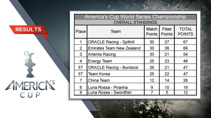 At the top of the overall leaderboard, ORACLE Racing’s James Sptihill holds the slimmest of leads – one point – over Dean Barker’s Emirates Team New Zealand. Artemis Racing, with an impressive Match Racing win in Naples, has closed the gap in third place.