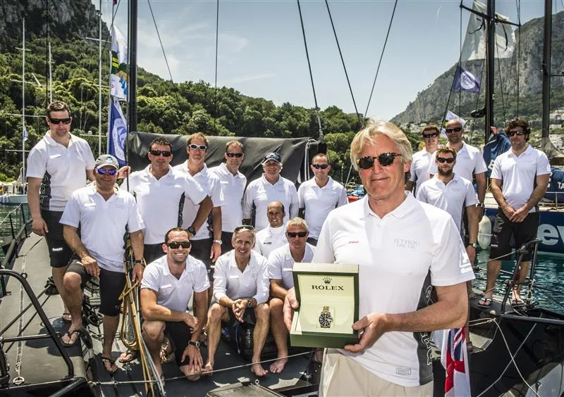 During the ceremony, the crew of Sir Peter Ogden’s Mini Maxi Jethou (GBR) received the week’s most coveted prize – the Rolex Trophy and timepiece – awarded to the overall winner of Leg Two of the 400-nautical mile offshore race which started and finished in Capri and comprised a pulsating journey through the Aeolian Islands in the Tyrrhenian Sea. The fastest boat on the water over Leg Two – Filip Balcaen’s 112-foot Supermaxi Nilaya – was awarded a Rolex timepiece after claiming line honours in a time of one day, two hours and five minutes.