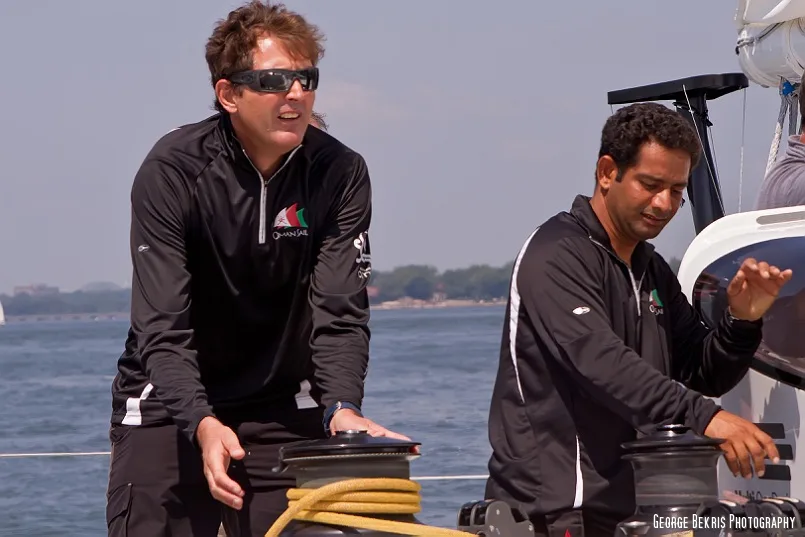 Sailed today with Sidney Gavignet on his lovely beast of a race boat, Musandam. She is Oman Sail’s Multi One Design 70 and flagship racer. Mr. Gavignet and crew are fresh into New York City after finishing the Prologue Race to the KRYS OCEAN RACE, which starts on Saturday. This is the inaugural KRYS Ocean race and it has drawn 5 of the world’s best multi hull skippers to fight it out mid ocean. Race For Water, FONCIA, Groupe Edmond de Rothschild, Spindrift Racing and Musandam-Oman Sail all hoping to break records.