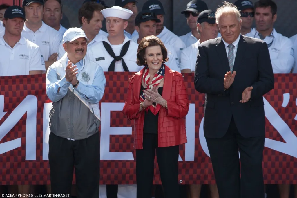 With the sailors of the four teams contesting the 2013 America’s Cup—ORACLE TEAM USA, Emirates Team New Zealand, Luna Rossa Challenge and Artemis Racing—standing behind her, Lucy M. Jewett, recently elected to the America’s Cup Hall of Fame, brought the opening ceremony to a close by saying, “Let the racing begin.”