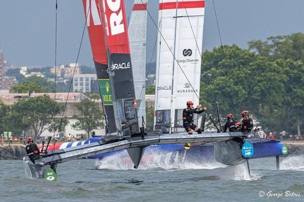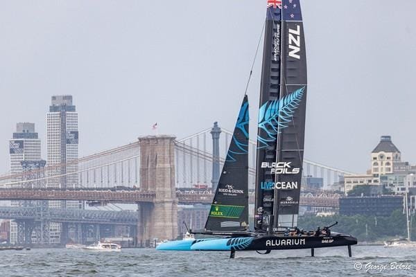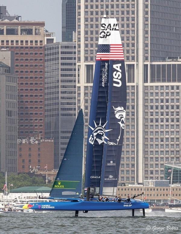 The New Zealand Team wins the New York stage of the Mubadala SailGP in a culminating a week full of events. The racing was a mix of light winds and shortened courses to full on week and spectacular sailing with boats foiling across the Hudson in view of the New York skyline and visitors lined up on both the New York and New Jersey side of the water. There were also quite a few spectator boats stretched along the outskirts of the course to take in the action.