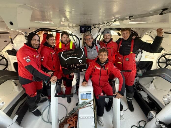 Thomas Coville and his six crew, Benjamin Schwartz, Frédéric Denis, Pierre Leboucher, Léonard Legrand, Guillaume Pirouelle and Nicolas Troussel, pocketed a new reference time (after those of the equator and the Good Hope) by completing the Ushant-Cape Leeuwin section in 17 days and 1 hour 17 minutes.